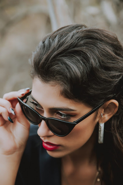 Per concludere il tutto una parure con rifiniture dorate ed effetto marmo, per richiamare i colori dei miei stivali,e un paio di sunglasses con montatura a gatto per un’allure misteriosa e sofisticata (nel mio caso per coprire le occhiaie).