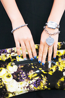 Il quasi arriva dagli accessori argento e dalla pochette che, di base è nera anch’essa, ma ha un tripudio di fiori sul verde molto chiaro e viola.