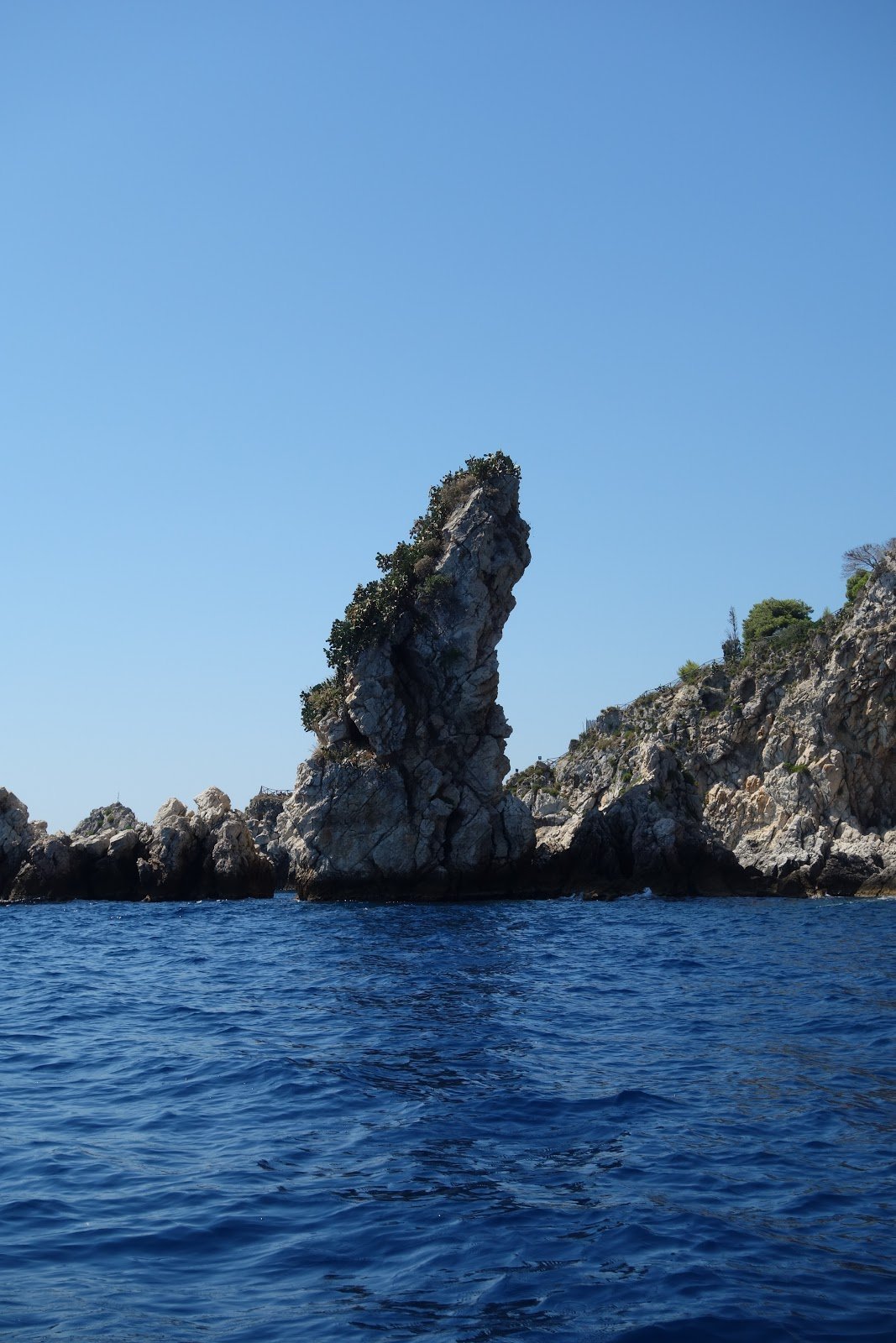 Il mare era cristallino, con rocce che si ergevano imponenti in mezzo all’acqua.
